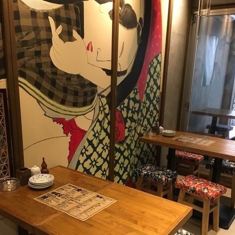 北斎の絵画を眺めながら仲間と飲むなら4名テーブル